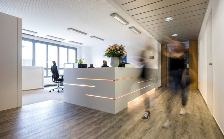 Empfangsbereich des Firmensitzes in Düsseldorf (© Jochen Rolfes)