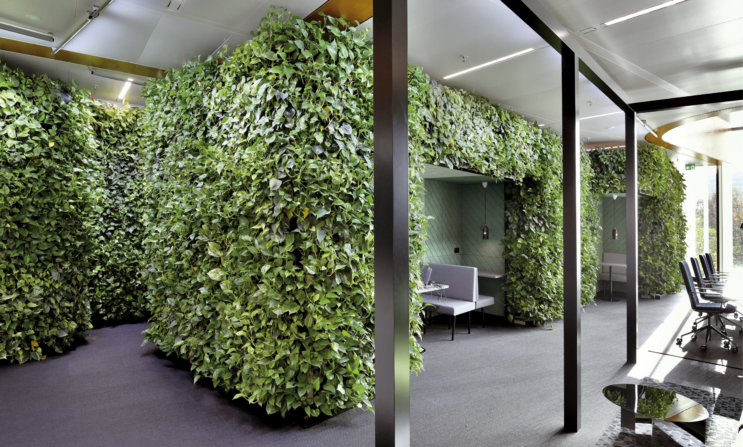 „Grüne Wände sind sowohl für Neubauten als auch für Bestandsgebäude realisierbar. Auch bieten sie einzigartige neue Trends in der Innenarchitektur“, so Wildung. „Pflanzenwände, ob fest installiert oder als mobiles Element, eröffnen zahlreiche neue Möglichkeiten, Räume kreativ zu gestalten. Durch die senkrechte Anordnung der Pflanzen werden Flächen zudem effektiv genutzt; es entstehen keine Verluste an Büro- oder Verkaufsflächen.“