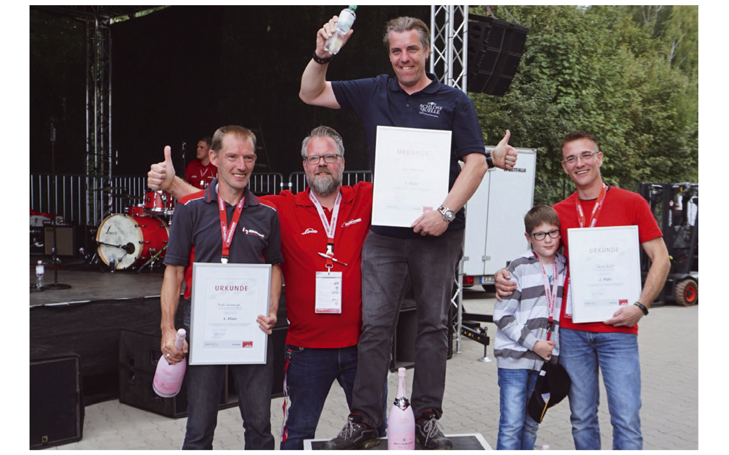 82 Staplerprofis aus dem Ruhrgebiet und Umgebung traten am 7. September beim 15. Schrader Stapler-Cup in Essen gegeneinander an. 500 Zuschauer verfolgten den spannenden Wettbewerb bei der Schrader Industriefahrzeuge GmbH & Co. KG. Drei Sieger haben sich für das Finale der Deutschen Meisterschaften im Staplerfahren, das vom 19. bis 21. September 2019 in Aschaffenburg stattfindet, qualifiziert. Meik Hammacher aus Goch von der Schloss-Quelle Mellis, Mühlheim, bewies das meiste Geschick in den anspruchsvollen Wettkampfparcours und sicherte sich den Titel „Regionalmeister im Staplerfahren für das Ruhrgebiet und Umgebung“. Zweiter wurde Tobias Müller von der Thimm Display GmbH, Essen, und Dritter Mike Wieringa von Hövelmann, Haldensleben. Die Sieger treten beim Finale des Stapler-Cup in Aschaffenburg gegen die Besten aus 24 weiteren, deutschlandweit ausgetragenen Vorrunden an. Diana Drescher aus Moers von der Hexion GmbH (Duisburg) wurde ebenfalls in Essen ausgezeichnet, sie war die fähigste Frau im Feld. Die beste Teamleistung beim Schrader Stapler-Cup lieferte Sieger Hammacher gemeinsam mit seinen Kollegen Mario Müller und Thomas Steinkopf von der Schloss-Quelle Mellis. Diese drei treten auch beim Finale der Firmen-Team-Meisterschaft in Aschaffenburg an, das Ergebnis von Drescher hingegen reichte nicht für eine Qualifikation für die letzte Runde der Deutschen Meisterschaft der Staplerfahrerinnen. Matthias Vorbeck, Geschäftsführer bei Schrader, drückte den frischgekürten Regionalmeistern fürs Finale die Daumen: „Wir haben hier heute wieder exzellente Leistungen beobachten können. Gute Übersicht, ruhiges Handling, beeindruckendes Fingerspitzengefühl für Gefährt und Ladung – nicht nur bei den Gewinnerinnen und Gewinnern. Für uns als Veranstalter ist damit Entscheidendes erreicht: Unser Hauptziel ist die Vermeidung von Unfällen mit und durch Gabelstapler: Je besser die Fahrer trainiert sind, desto sicherer sind sie an ihrem