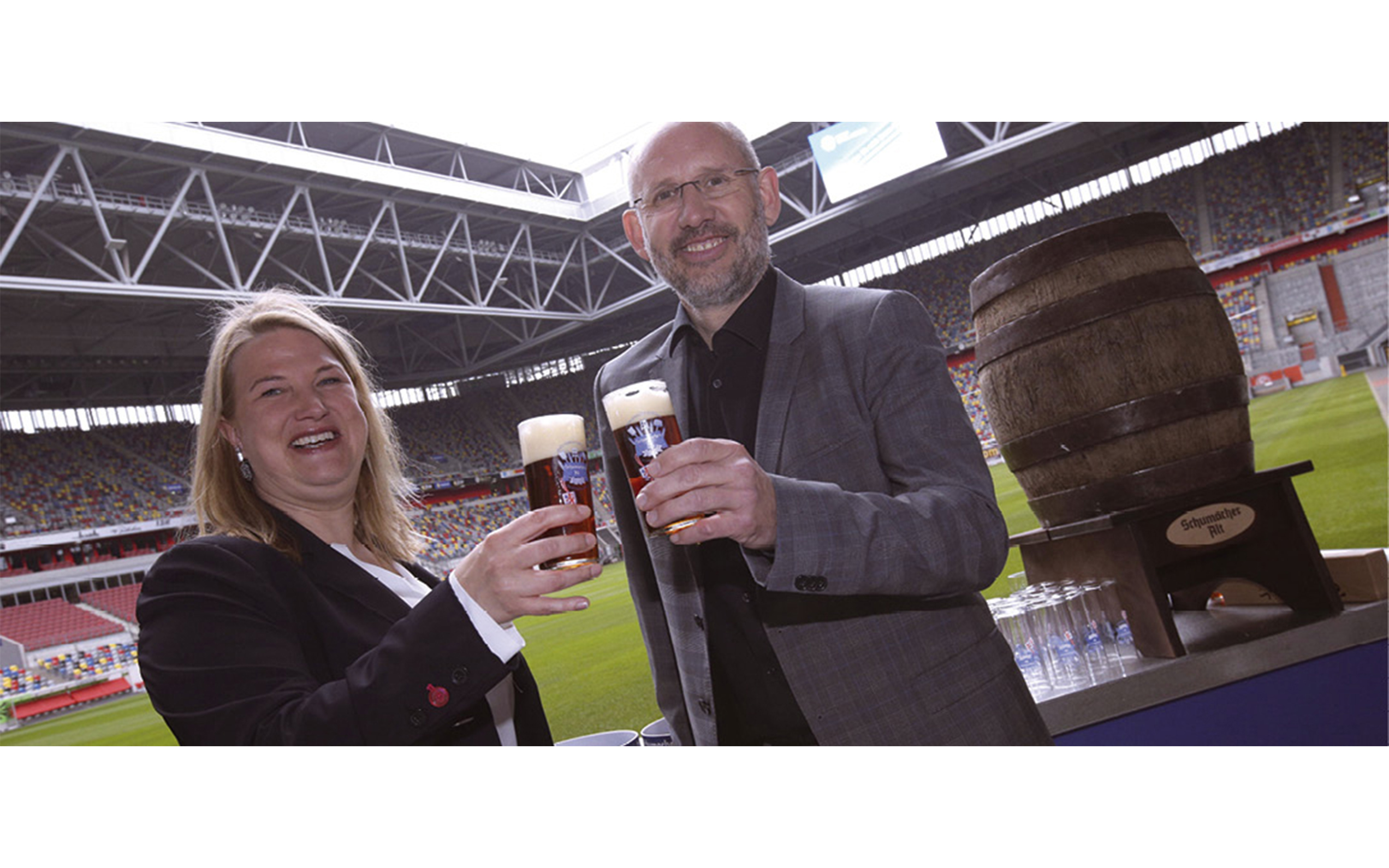 Die Brauerei Schumacher, älteste Hausbrauerei Düsseldorfs mit Gründungsjahr 1838, wird neuer Altbier-Partner in der Merkur Spiel-Arena. Ab September 2019 wird Schumacher Alt im Publikums- und in den VIP-Bereichen der Arena verkauft. Damit gibt es in Düsseldorf die erste und einzige Hausbrauerei in einem Bundesligastadion. D.Live und die Brauerei Schumacher haben einen einjährigen Vertrag geschlossen. „Wir freuen uns riesig, dass wir bald Schumacher Alt bei all unseren Veranstaltungen in der Merkur Spiel-Arena anbieten können. Wir wollen in unseren Venues verstärkt mit lokalen Partnern zusammenarbeiten. Die Partnerschaft mit der Brauerei Schumacher ist ein großartiger Schritt“, sagt Michael Brill, Geschäftsführer D.Live. „Uns erfüllt die Partnerschaft mit der Merkur Spiel-Arena mit großem Stolz und wir freuen uns über das Vertrauen, was man unserer Schumacher Altbier-Manufaktur entgegenbringt. Für uns ist die Zusammenarbeit eine Herzensangelegenheit, weil wir glauben, dass die Wahl für ein lokal gebrautes Bier immer ein Stück Heimatverbundenheit ist. Schumacher Alt hat seine Heimat seit 1838 in Düsseldorf und ist eine echte Düsseldorfer Spezialität“, so Thea Ungermann, Geschäftsführerin der Schumacher Altbier-Manufaktur. Die Familienbrauerei Schumacher wird heute bereits in der sechsten Generation geführt.