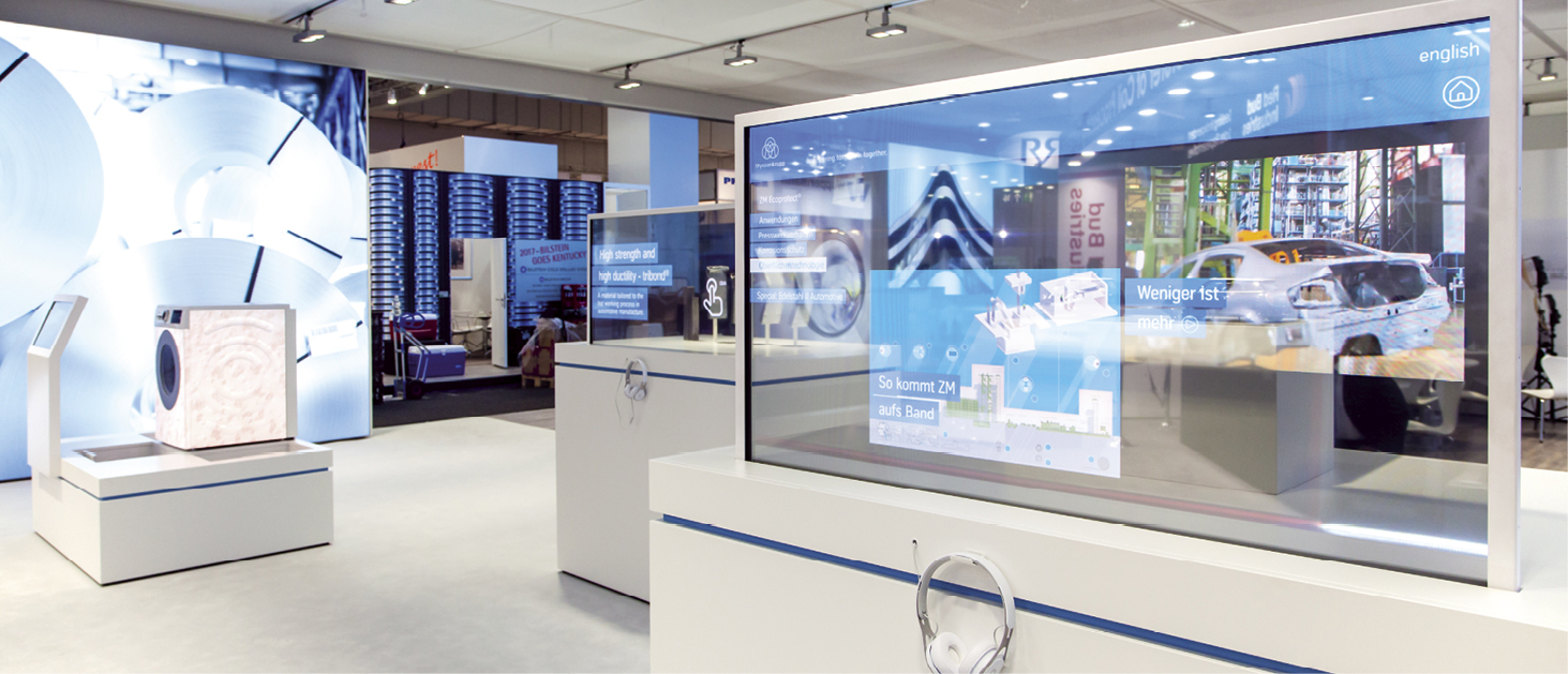 So hat SIGMA u.a. zuletzt bei der Produktion eines mobilen Messekits für die RWE-Tochter Innogy SE die Installation der Mediantechnik realisiert. Auch haben die Multimediaprofis die technische Ausstattung für den ThyssenKrupp-Messestand im Rahmen der EuroBLECH 2016 umgesetzt. Hierbei wurden transparente OLED-Touchdisplays mit entsprechender Bespielung verwendet. „Die Schwierigkeit lag dabei in der Verbindung der ausgestellten Exponate mit dem Multimediacontent, um eine optimale Verbindung von Betrachtern und Technik zu gewährleiten und so Menschen und Exponate in Einklang zu bringen“, beschreibt Volker Schräger-Enkirch, Inhaber von SIGMA System Audio-Visuell. „Es ist heute einfach notwendig, in vielen Bereichen eines Unternehmens modernste Medientechnik zu integrieren. Sei es in technisch anspruchsvollen Showrooms oder auf Messen und Events.“