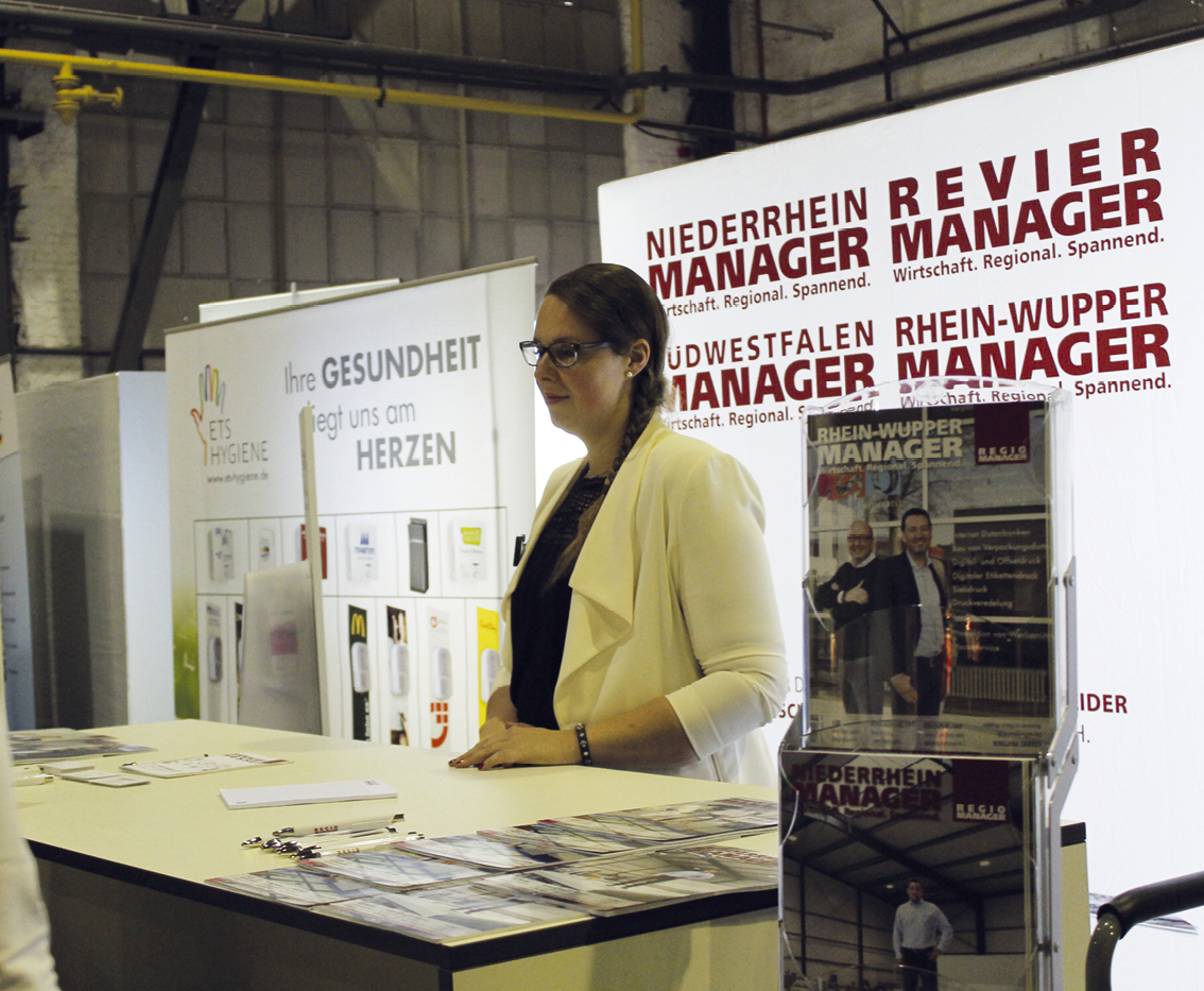 Am 07. September fand die REGIO MANAGER MESSE diesmal in der Alten Federnfabrik auf dem Areal Böhler in Meerbusch inmitten der Regionen Niederrhein und Rhein-Wupper statt. Über 90 Unternehmen und Institutionen präsentierten sich den Besuchern auf 1.600 Quadratmetern mit ihren Produkten und Dienstleistungen. Zudem fand die MANAGER MESSE in Kooperation mit der Werbeartikelmesse NRW statt, sodass sich die insgesamt rund 700 Besucher parallel über die neuesten Trends und Innovationen auf dem Gebiet der Werbeartikel informieren konnten. Von Beginn um 10 Uhr an verteilte sich der Besucherstrom aus Unternehmern und Entscheidern über den ganzen Tag. Gut für die Aussteller, an deren Ständen zahlreiche informative Gespräche mit viel Potenzial fürs Neugeschäft geführt wurden.