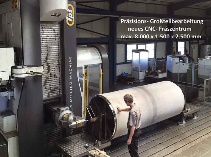 Schwerpunkt 1: Große Frästeile bis 8 x 1,5 Meter. Selbstverständlich aber auch kleinere Fertigungsteile werden passgenau nach Zeichnung oder Muster zuverlässig und fachgerecht auf 12 CNC-Maschinen (Fräsen, Drehen, Bohren) mechanisch bearbeitet. Unter anderem gehören Maschinentische, Rundschaltteller, Plattenfertigung inklusive Materialbeschaffung zum Tagesgeschäft.