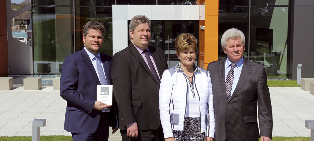 Mit der Verleihung des Platin-Zertifikats der Deutschen Gesellschaft für Nachhaltiges Bauen (DGNB) hat Schlüter-Systems jetzt sein neues Schulungsgebäude, die Schlüter-WorkBox, offiziell eröffnet. Vera King, Leiterin DGNB System, überreichte der Familie Schlüter das Platin-Zertifikat sowie die dazugehörige Plakette, die höchstmögliche Auszeichnung für ein solches Gebäude. Architekt Walter Ebeling unterstrich im Rahmen der Veranstaltung den außerordentlichen Anspruch des Neubaus in Sachen Architektur und Nachhaltigkeit. Er betonte, dass die WorkBox eines von nur wenigen Ausbildungsgebäuden in Deutschland ist, das über die Platin-Auszeichnung der DGNB verfügt. Das Konzept der DGNB beinhaltet alle wesentlichen Aspekte des nachhaltigen Bauens und umfasst die Themenfelder Ökologie, Ökonomie, soziokulturelle und funktionale Aspekte, Technik, Prozesse und Standort. Für die Umsetzung der Kriterien hat Schlüter-Systems auf firmen-