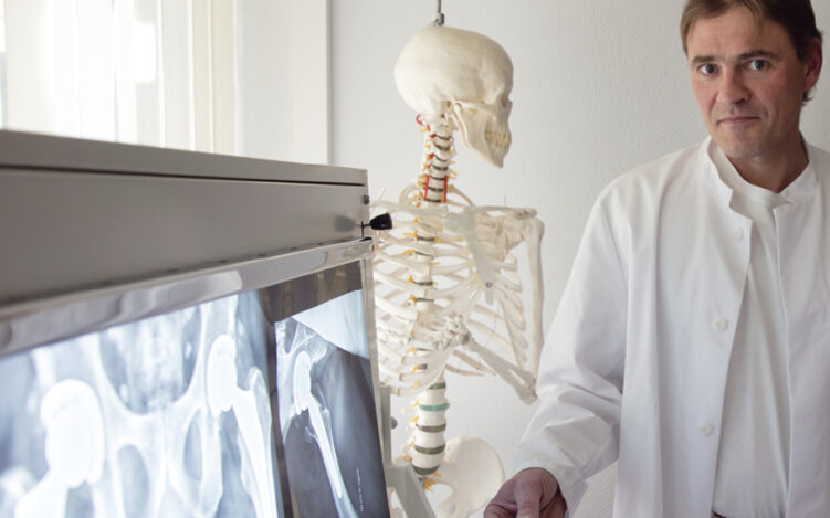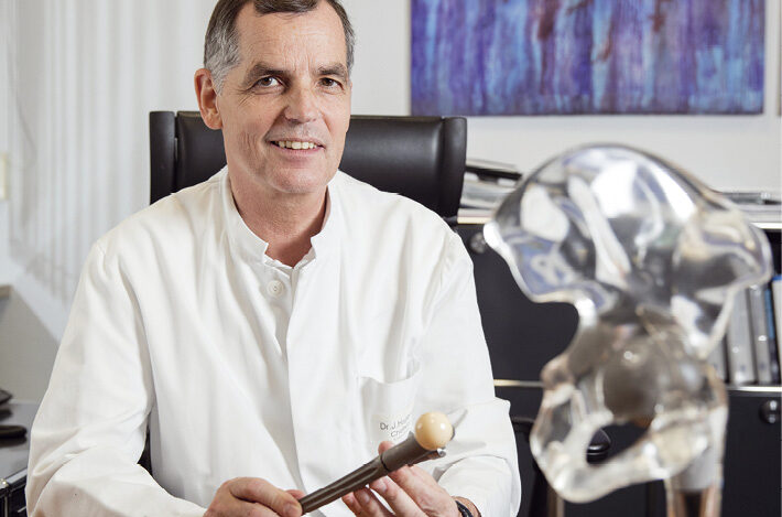 Er zählt zu den führenden Experten im Bereich der Endoprothetik, doch Chefarzt Dr. Joachim Hagenah selbst steht für die Devise „So früh wie nötig, aber so spät wie möglich“. Erst wenn es keine anderen Möglichkeiten mehr gibt, sollen seine Fähigkeiten als Operateur und die künstlichen Gelenke zum Einsatz kommen. Im Sinne des Patienten und gerade im Hinblick auf die persönliche Krankengeschichte setzt man zunächst auf gelenkerhaltende Maßnahmen. Dr. Hagenah: „Unsere hoch spezialisierten Ärzte haben viel Erfahrung auf diesem Gebiet und können genau einschätzen, was, wann und wie operiert werden sollte und wo ein Eingriff dagegen noch nicht notwendig ist. Mit Aufbauspritzen und Physiotherapie kann man Operationen häufig gut hinauszögern.“ Der gute Ruf der Klinik gab damals für ihn persönlich mit den Ausschlag, sich für ein Wirken in seiner Heimatstadt Lüdenscheid zu entscheiden. „Hellersen war mir immer ein Begriff gewesen, doch ich dachte anfangs, die Klinik hätte lediglich innerhalb der Region eine Bedeutung. Während des Studiums stellte ich dann aber bereits fest, dass sich viele Ärztekollegen gerade dort operieren ließen“, erinnert sich Dr. Hagenah. Nach seinem Studium in Kiel hatte er zunächst u.a. in Köln gearbeitet. Seit mehr als 14 Jahren leitet der Facharzt für Orthopädie, Chirurgie und Unfallchirurgie mit diversen Zusatzqualifikationen die Abteilung für Endoprothetik der Sportklinik Hellersen. Die neu hinzugekommenen Sektionen Handchirurgie/Plastische und Rekonstruktive Chirurgie/Ästhetische Chirurgie sowie Fuß- und Sprunggelenkchirurgie/Kinderorthopädie mit den leitenden Ärztinnen Dr. Petra Scheffer und Andrea Knichel stehen ebenfalls unter seiner Gesamtverantwortung. Nicht immer war klar, dass der seit 35 Jahren praktizierende Mediziner in der Endoprothetik beim Operieren von künstlichen Hüft- und Kniegelenken seine fachliche Heimat finden würde. Dr. Hagenah: „Von Haus aus bin ich Chirurg, habe zuvor in verschiedenen Kliniken gearbeitet und in allen Bereichen operiert: Brustkrebstumore, Schilddrüse, Hüfte et cetera. Die Vielfalt habe ich geschätzt, deswegen zögerte ich anfangs, in die spezialisierte Sportklinik zu gehen. Letztendlich stellt aber gerade diese Spezialisierung einen riesigen Vorteil für unsere Patienten dar. In einem Team von Fachärzten, die alle jahrelange Erfahrungen vorzuweisen haben, ist die hohe Qualität des Eingriffs immer gewährleistet.“ Zukunftsweisend ist dabei auch die hauseigene Knochenbank: Damit man später eventuelle Defekte oder Löcher im Knochen optimal auffüllen kann, wird hier das bei einer Operation entfernte Material des Patienten mit modernster Technik aufbereitet. Darüber hinaus arbeitet die Klinik mit mehreren weltweit führenden Herstellern künstlicher Gelenke zusammen, um zu gewährleisten, dass jeder Patient den für ihn bestmöglichen Ersatz bekommt. Für den gesamten Bewegungsapparat sind die Gelenke von elementarer Bedeutung, entsprechend wichtig ist der absolut präzise und individuelle Einsatz, um insgesamt die höchstmögliche Zuverlässigkeit sicherzustellen. Minimalinvasiv kann dabei die Implementierung künstlicher Hüftgelenke vorgenommen werden. Zum Fachbereich der Endoprothetik gehören außerdem die künstlichen Kniegelenke sowie Teil- oder Schlittenprothesen. Ein weiterer Schwerpunkt der Abteilung ist der operative Austausch von künstlichen Hüft- oder Knieprothesen. Mittlerweile ist circa jede fünfte Prothesenoperation in Hellersen eine derartige Wechseloperation.
