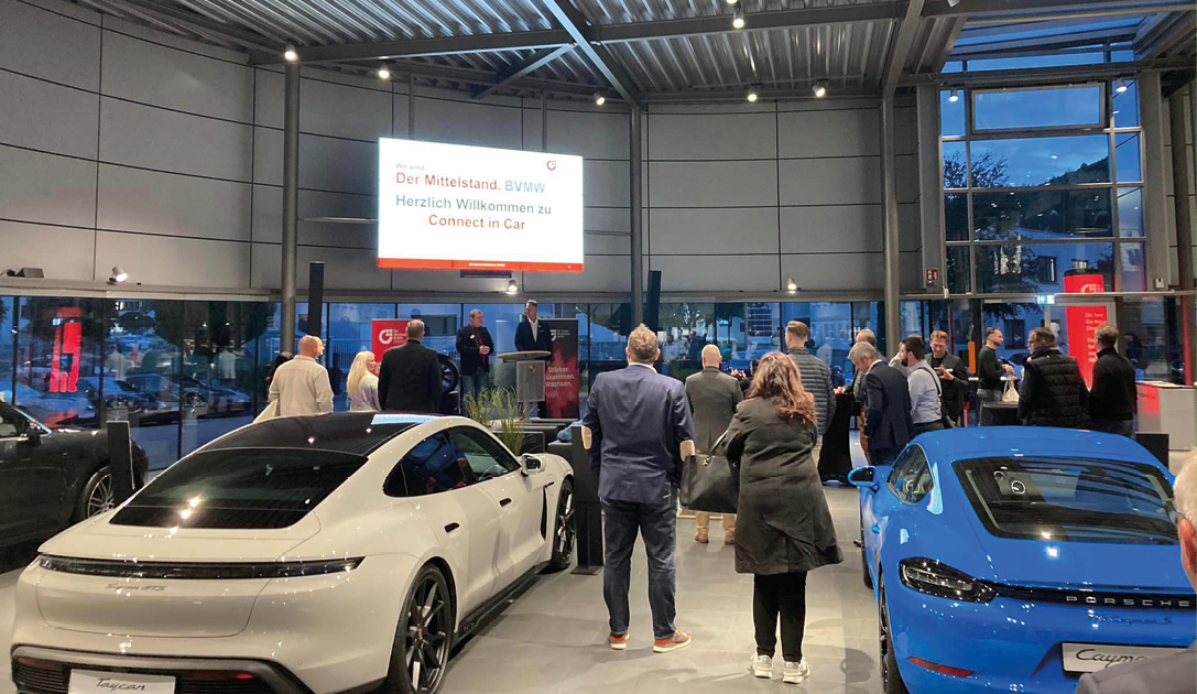„WAS FÜR EIN TOLLER ABEND“ war die einstimmige Meinung von ca. 50 Unternehmerinnen und Unternehmern bei der Veranstaltung „Connect in Car – Netzwerken mal anders“. Dieses neue Netzwerk-Event des BVMW (Der Mittelstand – Bundesverband mittelständische Wirtschaft), das der regionale Repräsentant Matthias Merzhäuser erstmalig im Siegerland in Zusammenarbeit und auf Einladung des Porsche Zentrum Siegen präsentierte, fand großen Anklang und so musste sogar eine Warteliste angelegt werden, da das Event überbucht war. Kompakte Netzwerk-Kontakte durch viele 1:1-Gespräche in 25 tollen Autos der Porsche-Produkt-Palette und ein inspirierender Vortrag von Porsche-Siegen-Geschäftsführer Stephan Gebing zum Thema „Digitalisierung im Autohaus“ ließen diesen Abend zu einem eindrucksvollen Netzwerk-Erlebnis werden. Zum Abschluss dann im offenen Netzwerken die Begegnung von Unternehmern, Geschäftsführern, Selbständigen, Führungskräften, Entscheidern und Freiberuflern im einmaligen Ambiente und bei bestem Catering des Porsche Zentrum Siegen. Hier wurden vielversprechende Geschäftskontakte geknüpft und die einhellige Meinung war: Dieses Netzwerk-Format sollte unbedingt weitergeführt werden. Infos unter www.bvmw.de/de/suedwestfalen/drei-laender-eck