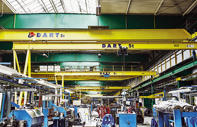 Die DART Fördertechnik GmbH wurde 1992 durch die heutigen Geschäftsführer Axel Ditz und Thomas Reiß gegründet. Inzwischen ist das Unternehmen in der Region zu einem bedeutenden und anerkannten Anbieter nahezu jeglicher Dienstleistungen und Produkte im Bereich der flurfreien Fördertechnik gewachsen. Als Sonderlösungen werden auch verschiedenste Flurförderzeuge hergestellt, gewartet oder in Stand gesetzt. Im Laufe der Zeit wurde das Leistungsspektrum um die Bereiche Hallen- und Maschinenbau erfolgreich erweitert. Darüber hinaus wird die Wartung und Reparatur von Industrietoren von der DART Fördertechnik GmbH ebenso angeboten wie die Durchführung von Kranführerschulungen. 60 hochqualifizierte Mitarbeiter sind in den Bereichen Service, Montage und Fertigung beschäftigt. Zum Produktportfolio gehören sowohl Lastaufnahmemittel und Arbeitshilfen angefangen im unteren Traglastbereich, wie auch nach Kundenanforderungen konstruierte hochkomplexe Brückenkrane im Traglastbereich bis 200t und Spannweiten von über 40m. Durch den Erwerb verschiedener Gütesiegel und Qualifikationen mit Fremdüberwachung wird die Qualität gesichert.