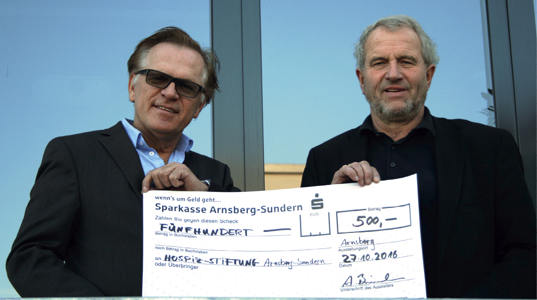 Sead Abdagic (Event Casino) übergab kürzlich eine Spende in Höhe von 500 Euro an die Hospiz-Stiftung Arnsberg-Sundern. Für die Einrichtung nahm Dr. Wilhelm Geldmacher, Vorsitzender des Vorstands, den Scheck entgegen. „Wir werden häufig gefragt, warum wir als Hospiz ´betteln gehen`“, sagt Dr. Wilhelm Geldmacher, „der Hintergrund ist, dass die Krankenkassen nur 80 Prozent der Kosten für den Patienten übernehmen. Aus diesem Grund freuen wir uns über Spenden von Seiten der Bürger. Das Hospiz steht allen offen – egal, welche Konfession der Kranke hat. Unser ambulanter Hospizdienst Sternenweg begleitet darüber hinaus die Menschen an ihrem wichtigsten Ort – dem eigenen Zuhause.“ Der Gewinn für das Hospiz kam im Rahmen der Südwestfalen Manager Messe im Oktober vergangenen Jahres zustande. Die Teilnehmer der Messe spielten am Casino Tisch von Sead Abdagic für den guten Zweck. Das mit Leidenschaft und Know-how durch den Eigentümer und Geschäftsführer geführte mobile Casino bietet nicht nur das Equipment, sondern auch die komplette Organisation für den Casino-Abend. Unter anderem wurde das Event Casino auf diversen Modeshows, James Bond-Partys und Silvesterveranstaltungen wie auch im Maritimhotel Grafenschaft-Schmalenberg installiert, unter dem Motto „Eine Nacht in Monte Carlo“. Zuletzt betreute das Event Casino die Charity-Veranstaltung „Night of the stars – night of my proms“ mit 250 geladenen Gästen aus Politik und Wirtschaft sowie das Campus Symposium in Iserlohn.