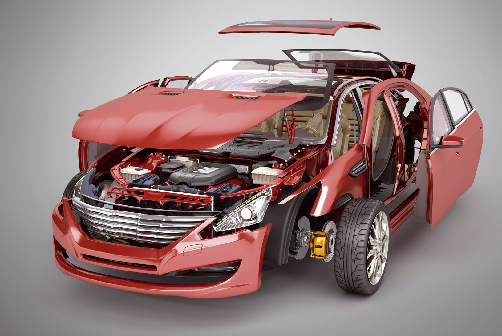 Die Wahl des Werkstoffs hängt stark von den Materialeigenschaften ab. Gewicht, Steifig- und Dehnbarkeit, Bruchgrenzen, Fertigungs- und Verarbeitungseigenschaften, Verfügbarkeit, Recyclingfähigkeit und vor allem Kosten sind wichtige Kriterien. Die meisten Bauteile im Automotive-Bereich sind aus Metall, eingesetzt werden immer mehr Metall-Legierungen aus Eisen und Aluminium oder Kunststoff, erklärt der TÜV Nord. Der weiß auch, woher die Bestandteile eines Automobils kommen.