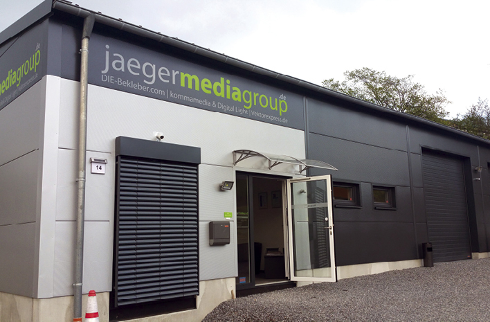 Seit einem Jahr ist die jaegermediagroup.de auf rund 400 Quadratmetern in eigenen Geschäftsräumen „Im Winkel 14“ in Gevelsberg ansässig. Drei Firmen sind hier unter einem Dach vereint: Werbeagentur (kommamedia.de), Werbetechnik (DIE-Bekleber.com GmbH) und Internetagentur (Digital Light Media) arbeiten hier Hand in Hand für höchste Kundenansprüche und Visionen. „Wir konzipieren, entwerfen und erstellen Layouts für Logos, Flyer, Kataloge oder Fahrzeugbeschriftungen unserer Kunden und beraten diese bei Werbefragen aller Art“, sagt Kay Jaeger, Geschäftsführer der jaegermediagroup. „Produktfotografie sowie Bildbearbeitung gehören ebenfalls zu unserem Portfolio.“ Die Werbetechniker von DIE-Bekleber.com haben sich in den letzten 25 Jahren einen Namen in ganz NRW gemacht. Neben dem Beschriften von Schaufenstern und Arztpraxen folieren sie alle Arten von Pkw, Lkw, Boote und Busse. „Wir sind ein zertifiziertes Unternehmen im Umgang mit Folien. Ständige Lehrgänge sind ein Muss für uns“, so Kay Jaeger weiter. Zum Angebot zählt auch das Vollverkleben (Wrapping) von Fahrzeugen. „Natürlich produzieren wir auch Aufkleber oder großformatige Werbebanner. Doch wir entwickeln unser Angebot auch kontinuierlich weiter, passen es den Kundenwünschen an“, sagt Jaeger, „so kommt es, dass man bei uns auch UV-/Sonnenschutz für Pkw und Flachglas sowie Sicherheitsfolien für Gebäudefenster/-türen bekommt. Und ganz wichtig: Alle unsere Produkte werden ausschließlich inhouse produziert. So werden Fehler minimiert!“