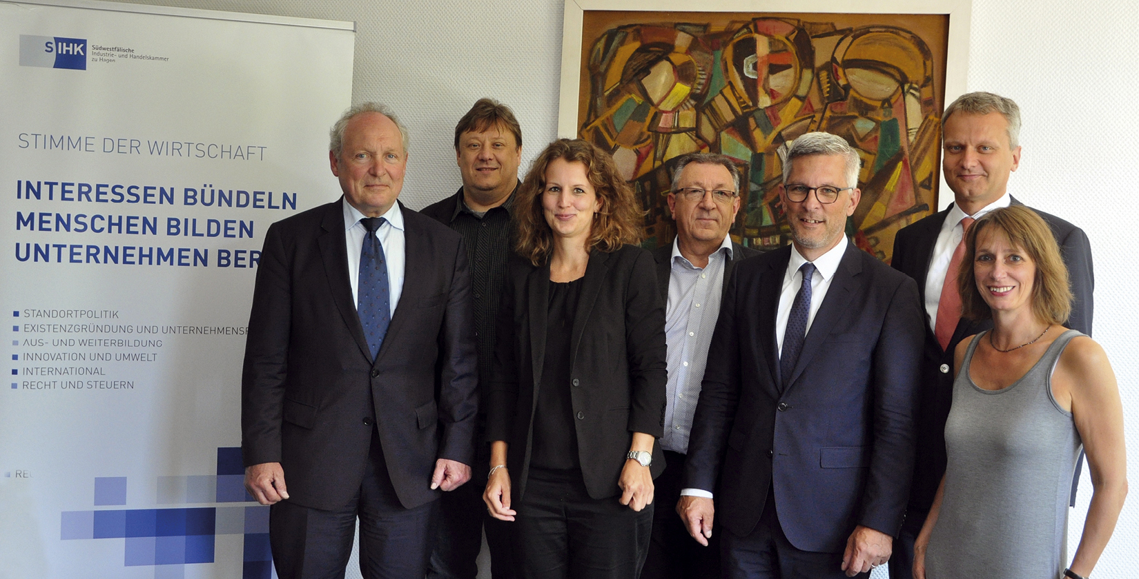 Die Zukunft des Wirtschaftsstandorts Hagen stand im Fokus beim „Standortdialog Wirtschaft“. Zu einem konstruktiven Austausch traf sich im Rahmen des 3. Standortdialogs Wirtschaft Oberbürgermeister Erik O. Schulz in der SIHK mit Vertretern des Handwerks, der SIHK, der Arbeitgeber, der Gewerkschaften, des Unternehmervereins und der HAGENagentur. Auf der Tagesordnung stand ein großes Thema: die Digitalisierung. Durch digitale Verwaltungsangebote sollen die Ergebnisse und Wirkungen kommunaler Leistungen sowie die Servicequalität und Wirtschaftlichkeit kommunalen Handelns verbessert werden. Ziel der Stadtverwaltung sei es, mit einer digitalen Gesamtstrategie die Verwaltungsprozesse weiter zu standardisieren. Mit Blick auf die digitale Infrastruktur wurden in Hagen insgesamt 50 „weiße Flecken“ bei der Breitbandversorgung festgestellt. Die Gesprächspartner stimmten überein, dass die Hagener Wirtschaft sowie die Bevölkerung dringend einen leistungsfähigen Breitband-Anschluss benötigen, um am Puls der Zeit zu bleiben. Aktuell laufen die Ausschreibungen zum Breitbandausbau, der voraussichtlich im kommenden Jahr starten wird. Die Teilnehmer sind sich einig, dass eine frühzeitige Planung und Kommunikation der Baumaßnahmen notwendig ist, damit sich die ansässigen Unternehmen und Menschen auf die Tiefbauarbeiten einstellen können. Der „Standortdialog Wirtschaft“ besteht aus der Verwaltungsspitze der Stadt Hagen und Vertretern der Wirtschaft sowie verschiedenen Sozialpartnern. Diskutiert werden zentrale Themen der Stadtentwicklung. Gemeinsames Interesse ist die positive Weiterentwicklung des Wirtschaftsstandortes Hagen im Sinne des Standortes, der Betriebe und der Beschäftigten.