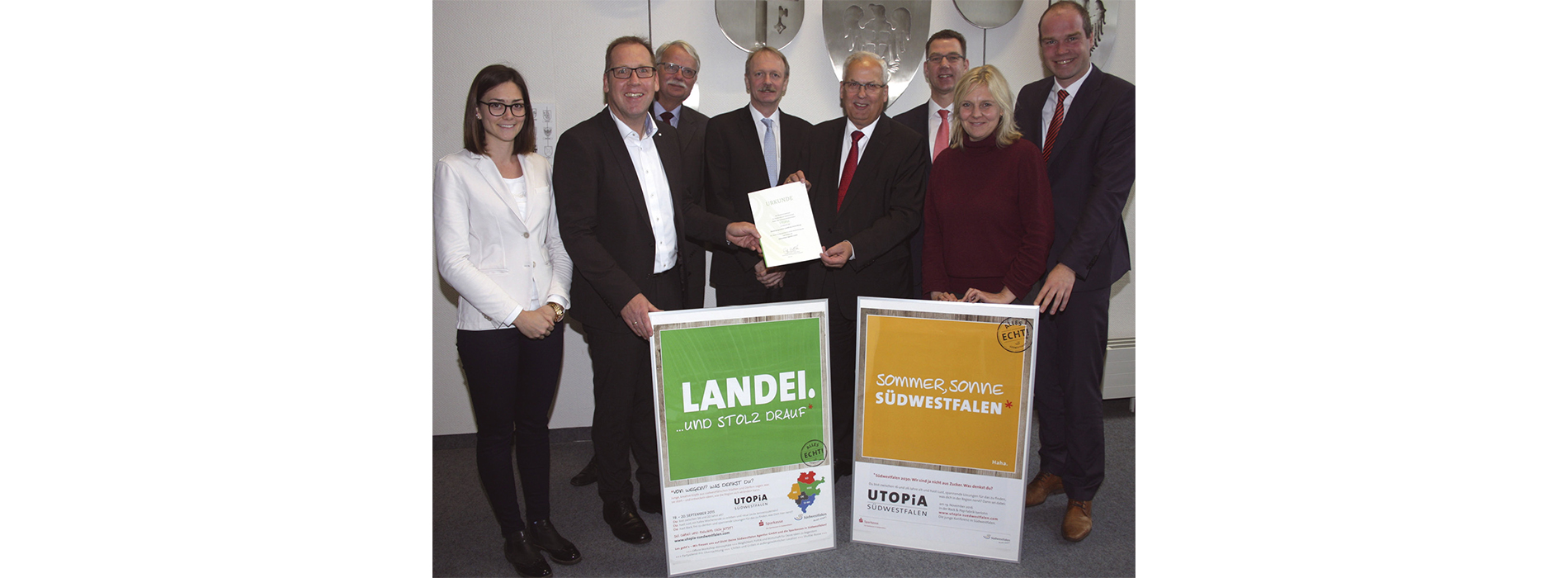 Zweites zentrales Thema des Treffens war „UTOPiA Südwestfalen“ – die von der Südwestfalen Agentur und Landrat Dr. Schneider 2015 initiierte Jugendkonferenz und Denkwerkstatt für Südwestfalen. Bisher zweimal erfolgreich in Hilchenbach und Iserlohn durchgeführt, soll sie nun als bundesweites Modellprojekt in den nächsten Jahren beispielhaft zeigen, wie junge Menschen in regionale Entscheidungsprozesse, z.B. auch die der REGIONALE 2025, erfolgreich eingebunden werden können, indem sie sehr konkret eigene Projekte entwickeln und an der Umsetzung beteiligt werden. „Es ist uns wichtig, mehr mit der Jugend ins Gespräch zu kommen“, so Hubertus Winterberg, Geschäftsführer der Südwestfalen Agentur GmbH, und Dr. Stephanie Arens, verantwortlich für den Bereich Regionale Entwicklung und LandLeben in der Agentur. Entscheidend für die Zukunft sei schließlich auch, die Region „aus dem Blickwinkel der Jugendlichen und jungen Erwachsenen zu sehen und sie einzuladen, Südwestfalen mitzugestalten. Das können wir mit UTOPiA erreichen“, sind beide überzeugt.