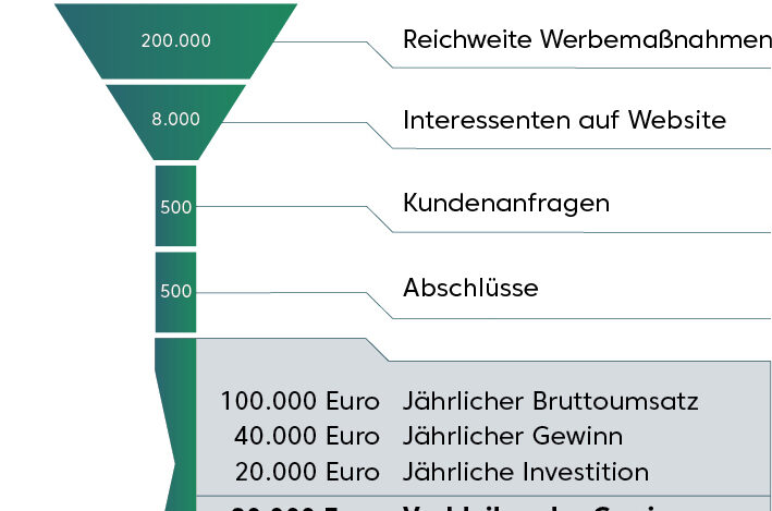 Robin Apel: Nein, natürlich sind wir keine Hellseher. Deswegen haben wir eine Schritt-für-Schritt-Methode entwickelt, in der wir nach der Klärung von zwei grundlegenden Fragen bereits einen digitalen Vertriebsplan erstellen können, der Investition und Gewinn gegenüberstellt.