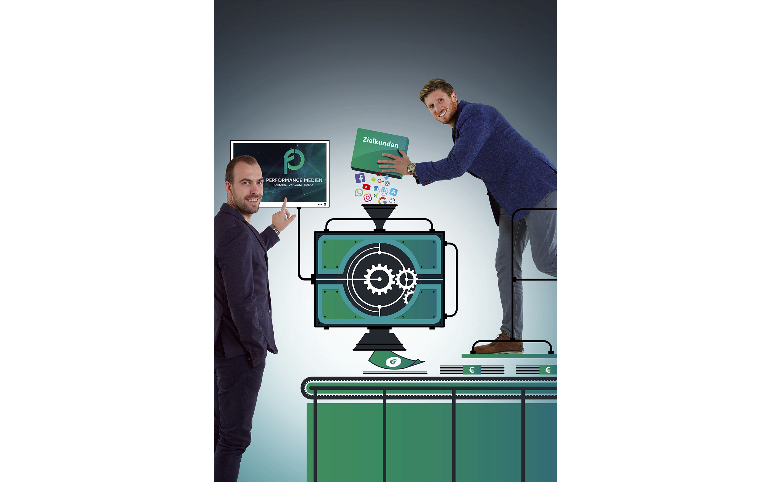Julian Schmidt: Da wir vorrangig Unternehmer sind und anfangs selbst mit der Online-Welt zu kämpfen hatten, wissen wir ganz genau, was unseren Kunden wichtig ist – nämlich kalkulierbare Investments. Unser Ansatz ist die maximale Umsatz- und Gewinnsteigerung mit anfänglich minimalem Aufwand in den Online-Medien. Eine analytische, messbare und transparente Vorgehensweise ist daher der Grundpfeiler unserer Arbeit. Wir arbeiten analytisch ohne viel „Blabla“. Wir möchten mit nachvollziehbaren Ergebnissen überzeugen. Daher das etwas überspitzte Bild auf dem Cover.