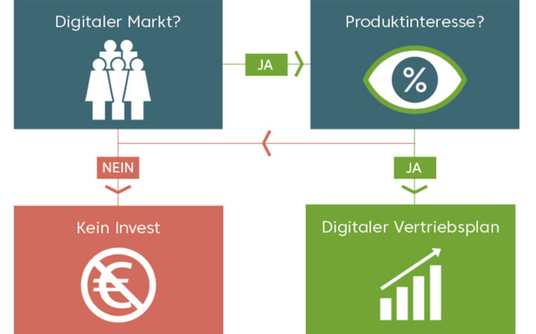 Robin Apel: „Gibt es einen digitalen Markt für das Produkt oder die Dienstleistung?“ und: „Wird das Produkt oder die Dienstleistung in diesem Markt angenommen?“ Können die beiden Fragen nach der Auswertung von Analysen und Kurztests mit Ja beantwortet werden, erstellen wir einen detaillierten digitalen Vertriebsplan. Der nötige Geldeinsatz und der Return on Investment, die Kapitalrendite, können so schon nach einer kurzen Testphase sehr genau aufgezeigt werden.