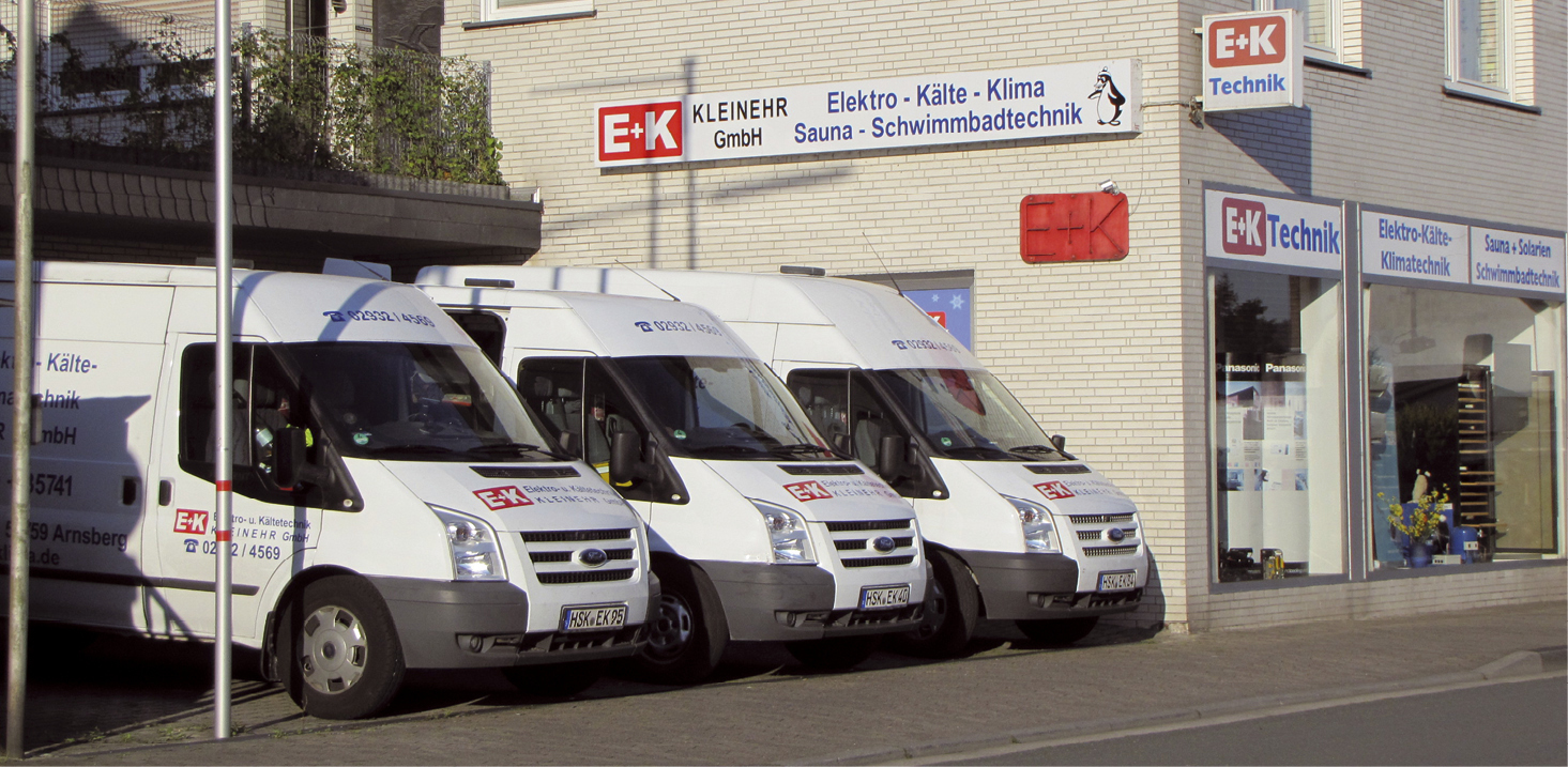 „Ein Klimagerät kauft man nicht über das Internet oder am Telefon“, sagt Thomas Kleinehr, Geschäftsführer von E+K Elektro- und Kältetechnik Kleinehr in Arnsberg. „Wir als Kälte-Klima-Fachbetrieb kommen zum Kunden. Nur so erhält dieser eine optimale Beratung, welches Klimagerät für seinen Bedarfsfall das geeignete ist. Auch der Montageaufwand kann so bestimmt werden, um dann ein individuell zugeschnittenes Angebot zu erstellen.“ Seit 1975 ist das von Helmut Kleinehr gegründete und seit 2010 von seinem Sohn Thomas Kleinehr weitergeführte Unternehmen Spezialist für Beratung, Verkauf, Montage, Wartung und Reparatur rund um Klimatechnik, Kühlzellen, Tiefkühlzellen, Kälteanlagen, Fahrzeugkühlung (z.B. Kerstner), Luftentfeuchtung und Luftbefeuchtung, Luftreinigung, Saunabau und Saunazubehör. Ein Service, den insbesondere Gewerbekunden und Industriekunden zu schätzen wissen, in den letzten Jahren zunehmend aber auch Privatkunden. „Auch im Privatbereich ist ein Klimagerät kein Luxus mehr. Ein erholsamer Schlaf bei angenehmen Temperaturen wirkt sich positiv auf das Wohlbefinden der Menschen aus“, so Geschäftsführer Thomas Kleinehr. Der 13 Mitarbeiter starke Ausbildungsbetrieb wächst seit Jahren stetig und ist an der Kleinbahnstraße 5 in Arnsberg, Neheim-Hüsten zu finden. Auf einer Fläche von rund 400 Quadratmetern sind das Büro, ein kleines Ladenlokal für Saunazubehör, Werkstatt, Lager und Parkplätze untergebracht. Die vier Kundendienst-Fahrzeuge sind mit allen wichtigen Werkzeugen, Materialien und Maschinen ausgestattet, die für eine fachgerechte Montage, Wartung und Reparatur von Kälte- und Klimaanlagen erforderlich sind. Somit ist es möglich, die Serviceleistungen schnell und fachgerecht zu erbringen. Der Kundendienst ist rund um die Uhr erreichbar – und das an 365 Tagen im Jahr. Die Serviceleistungen von E+K Elektro- und Kältetechnik Kleinehr werden überregional in ganz Deutschland in Anspruch genommen. Hauptsächlich stammen die Kunden aber aus Arnsberg, dem Sauer- und Rheinland beziehungsweise aus NRW. E+K Elektro- und Kältetechnik Kleinehr ist ein in der Handwerksrolle eingetragener Meisterbetrieb, ein qualifizierter Fachbetrieb nach WHG und nach ChemKlimaschutzVO zertifiziert.