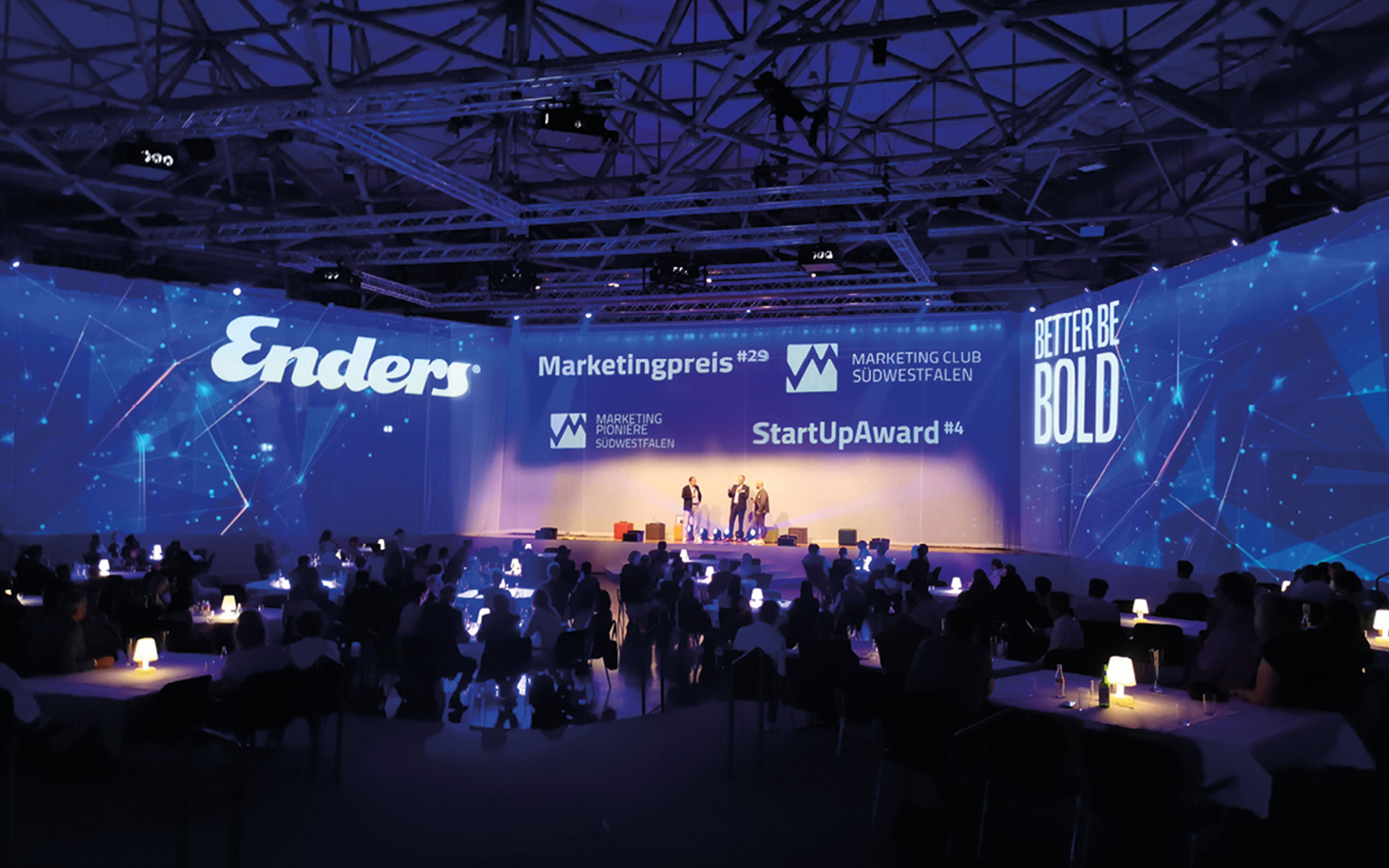 Zur 29. Verleihung des Südwestfälischen Marketing Preises und des StartUp-Awards 2022 fanden sich am 16.08. rund 200 Mitglieder und Besucher aus Wirtschaft und Marketing in der Stadthalle Hagen ein. Bereits zu Beginn des Events gab es eine beeindruckende Präsentation der neuen Panovent-Flächen durch Stadthallen-Chef Volker Wolf. Durch die modernen Panoramaprojektionen konnten die Gäste in ein kreatives Bildermeer eintauchen und es visuell besonders eindrucksvoll genießen.