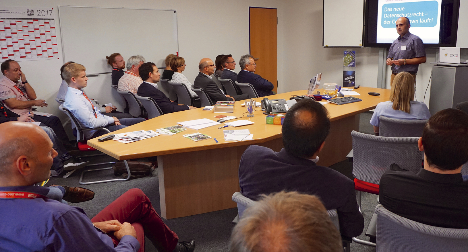Im Fokus stand vor allem die ISDN-Abschaltung, die jetzt in die heiße Phase geht. „Bis Ende des Jahres 2018 stellt die Deutsche Telekom Telefonanschlüsse auf die All-IP-Technik um und schaltet alle klassischen Festnetzanschlüsse ab. Viele Anschlussinhaber sind nun verunsichert und fragen sich, was das Ende von ISDN für ihre Firma bedeutet“, erklärt der SEC-COM-Geschäftsführer. „Ziel unserer Hausmesse war es, für Klarheit zu sorgen und Halbwahrheiten auszuräumen.“ Gäste hatten die Möglichkeit, mit den SEC-COM-Mitarbeitern ins Gespräch zu kommen und spezifische Fragen zu klären oder sich an den Ständen der ausstellenden Firmen zu informieren. Großer Andrang herrschte auch in den Seminarräumen, in denen Experten ihr Publikum mit mitreißenden Präsentationen und Vorträgen begeisterten. Aussteller und Referenten machten aber nicht nur deutlich, worauf man bei der All-IP-Migration achten sollte, sondern zeigten anhand von praktischen Beispielen auf, welche Vorteile die Umstellung von ISDN auf ein moderneres, leistungsfähigeres Netz haben kann. „All-IP eröffnet neue Möglichkeiten: Unternehmen erhalten die Chance, ihre Kommunikation neu zu organisieren und damit sowohl interne als auch externe Prozesse zu verbessern. Gleichzeitig macht man seine Firma damit attraktiv für eine neue Generation von Mitarbeitern, bei der das Telefonieren zunehmend an Bedeutung verliert und Instant-Messaging-Dienste immer mehr in den Vordergrund rücken.“ Darüber hinaus warteten spannende Präsentationen über HD-Videoüberwachung, Computer Telephony Integration (CTI), Unified Communications & Collaboration (UCC), die Vorgaben der Finanzmarktrichtlinie MiFID II für Gesprächsmitschnitte, die Einbindung von Smartphones als Schließmedium für professionelle Zutrittskontrollsysteme sowie über GoBD (Grundsätze zur ordnungsmäßigen Führung und Aufbewahrung von Büchern, Aufzeichnungen und Unterlagen in elektronischer Form sowie zum Datenzugriff). Sebastian Gehring, IT-Experte des VfL Bochum, berichtete in seinem unterhaltsamen Vortrag über die Erfahrungen des Fußball-Zweitligisten mit dem SEC-COM-Team. Den Schlusspunkt setzte Rechtsanwalt Claus Volke, Gesellschafter der Kanzlei Volke 2.0, der über das neue Datenschutzrecht referierte. Wer sich zwischendurch eine kurze Pause gönnen wollte, hatte vor dem Eingang der Firmenzentrale die Möglichkeit, mit Golf-Profi Erwin Schellert zur Entspannung den Golfschläger zu schwingen und ein paar Bälle abzuschlagen. Am Ende konnten die Besucher den aufregenden Tag bei einem köstlichen BBQ entspannt ausklingen lassen. Hier hatten sie auch noch einmal die Möglichkeit, die gesammelten Eindrücke zu rekapitulieren und sich mit den Organisatoren auszutauschen. „Es war ein rattenscharfer Tag mit vielen spannenden Vorträgen und zahlreichen interessanten Gesprächen“, fasst Guido Otterbein zusammen und freut sich über zufriedene Gäste: „Wir haben ein durchweg positives Feedback erhalten.“ Über regen Andrang – und viel Lob – durfte er sich ebenfalls Ende September beim Auftakt der Seminarreihe „Wissensimpulse“ freuen: „Wir machen uns stetig Gedanken darüber, wie wir unsere Kunden bestmöglich unterstützen können. Um ihnen den Unternehmensalltag zu erleichtern, haben wir nun gemeinsam mit Experten wie Claus Volke Workshops entwickelt.“ Ziel sei es, über Trends und Themen rund um die Kommunikation zu informieren und die Kunden mit Tipps zur Verbesserung ihrer Prozesse zu versorgen. Zum Auftakt stand die neue europäische Datenschutz-Grundverordnung (EU-DSGVO) im Fokus. Claus Volke – der nicht nur Rechtsanwalt, sondern auch Buchautor, Lehrbeauftragter für IT-Recht und Mediator ist – zeigte den Teilnehmern alle wichtigen Grundlagen sowie die wesentlichen Änderungen und Verschärfungen durch die EU-DSGVO verständlich auf. Zudem stellte er konkrete Lösungsvorschläge vor.