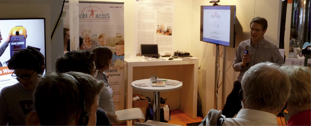 Technische Assistenzsysteme – vom Operationsroboter bis hin zum selbstfahrenden Auto – werden immer intelligenter und können teilweise selbstständig lernen. In Zukunft werden sie mehr Alltagsaufgaben übernehmen und die Menschen damit entlasten. Wie genau diese Zukunft aussehen kann, stand im Mittelpunkt des Zukunftskongresses „Technik zum Menschen bringen“, organisiert vom Bundesministerium für Bildung und Forschung (BMBF). Ganz unterschiedliche Experten aus den Ingenieurwissenschaften und der Robotik, der Philosophie und Psychologie sowie Informatiker, Neurowissenschaftler, Ärzte und Pflegekräfte beschäftigten sich mit den Chancen und Risiken, die diese innovativen Technologien mit sich bringen. Begleitet wurde der Kongress von einer Ausstellung, die spannende Einblicke in die aktuelle Forschung zur Mensch-Technik-Interaktion gab. Mit dabei waren auch Projekte der Universität Siegen. Präsentiert wurden beim Zukunftskongress das Projekt MobiAssist, ein Trainingssystem zur Förderung der körperlichen Leistungsfähigkeit und Mobilität von Demenzpatienten, sowie ELISE (Forschungskolleg FokoS), ein interaktives und emotionssensitives Lernsystem, das als Planspiel in einer virtuellen Realität (VR) stattfindet. Auch Projekte, an denen Forscher der Universität Siegen beteiligt sind, wie KOLA, ein lichtbasiertes „Kommunikations-Assistenzsystemen“ für den Straßenverkehr und Sympartner, ein Projekt zu Verbesserung der Assistenzrobotik im häuslichen Umfeld, wurden vorgestellt.