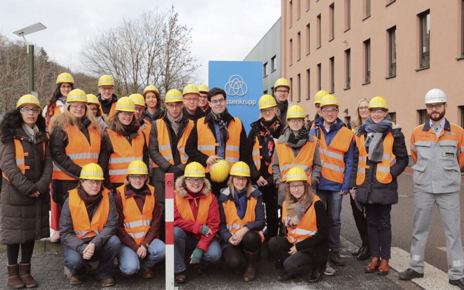 Sicherheit geht vor: Stipendiatinnen und Stipendiaten der FernUniversität besuchten das Werk von thyssenkrupp in Hagen-Hohenlimburg (Foto: FernUniversität)