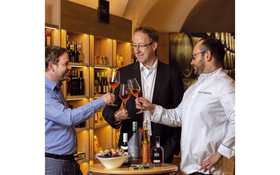 Michael Kindermann, Leiter des Geschäftsbereichs Hospitality, im Gespräch mit Geschäftsführer Sascha Witt sowie Küchenchef Henry Burghardt (v.l.) Foto: Wort & Lichtbild